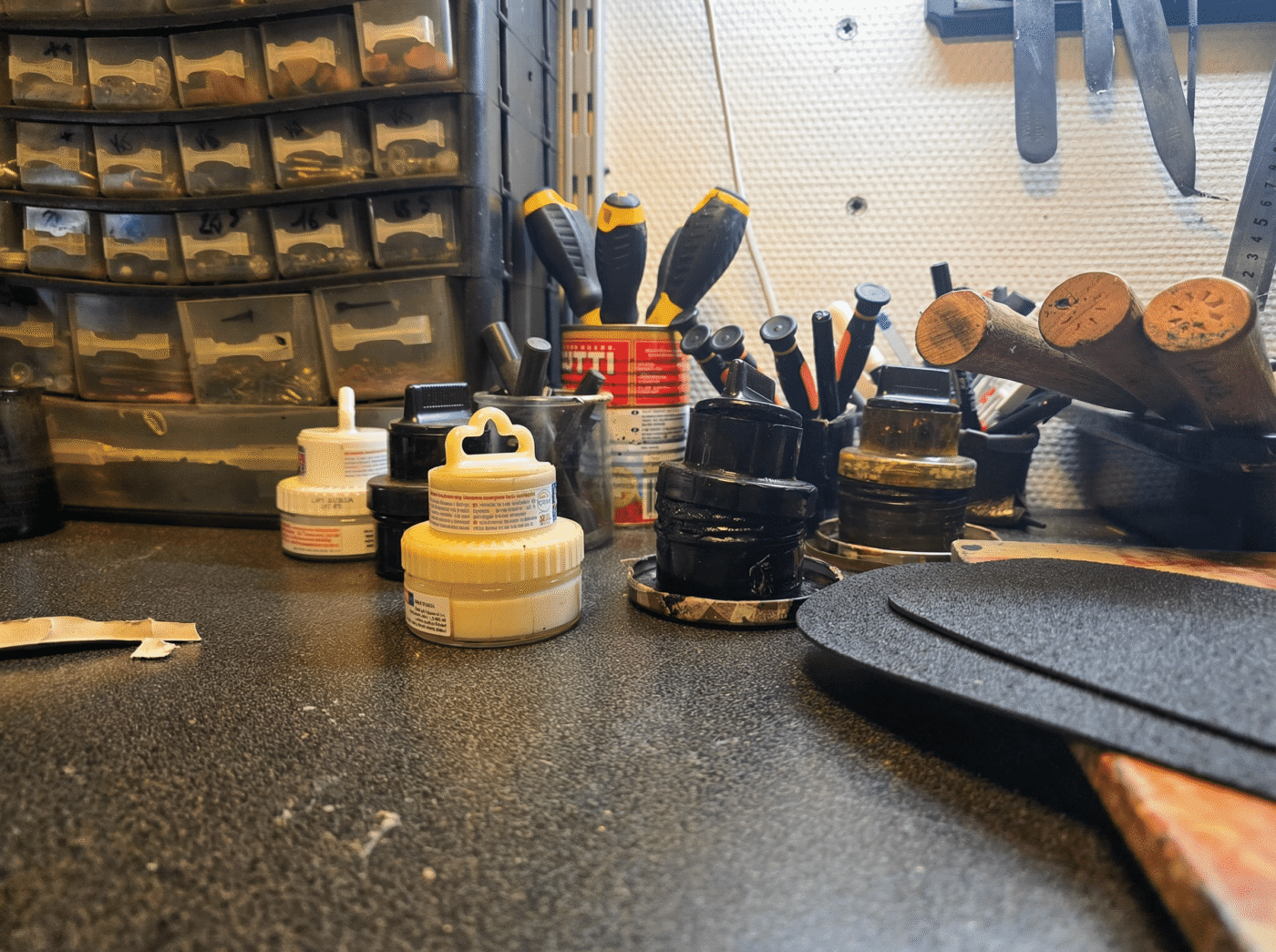 Ingénieur et designer industriel chez Decathlon, il a tout quitté pour la cordonnerie. D'abord seul à l'atelier, il a construit Risole pas à pas. Aujourd'hui il pilote l'équipe, s'occupe des cas complexes et pousse le métier vers l'avant.